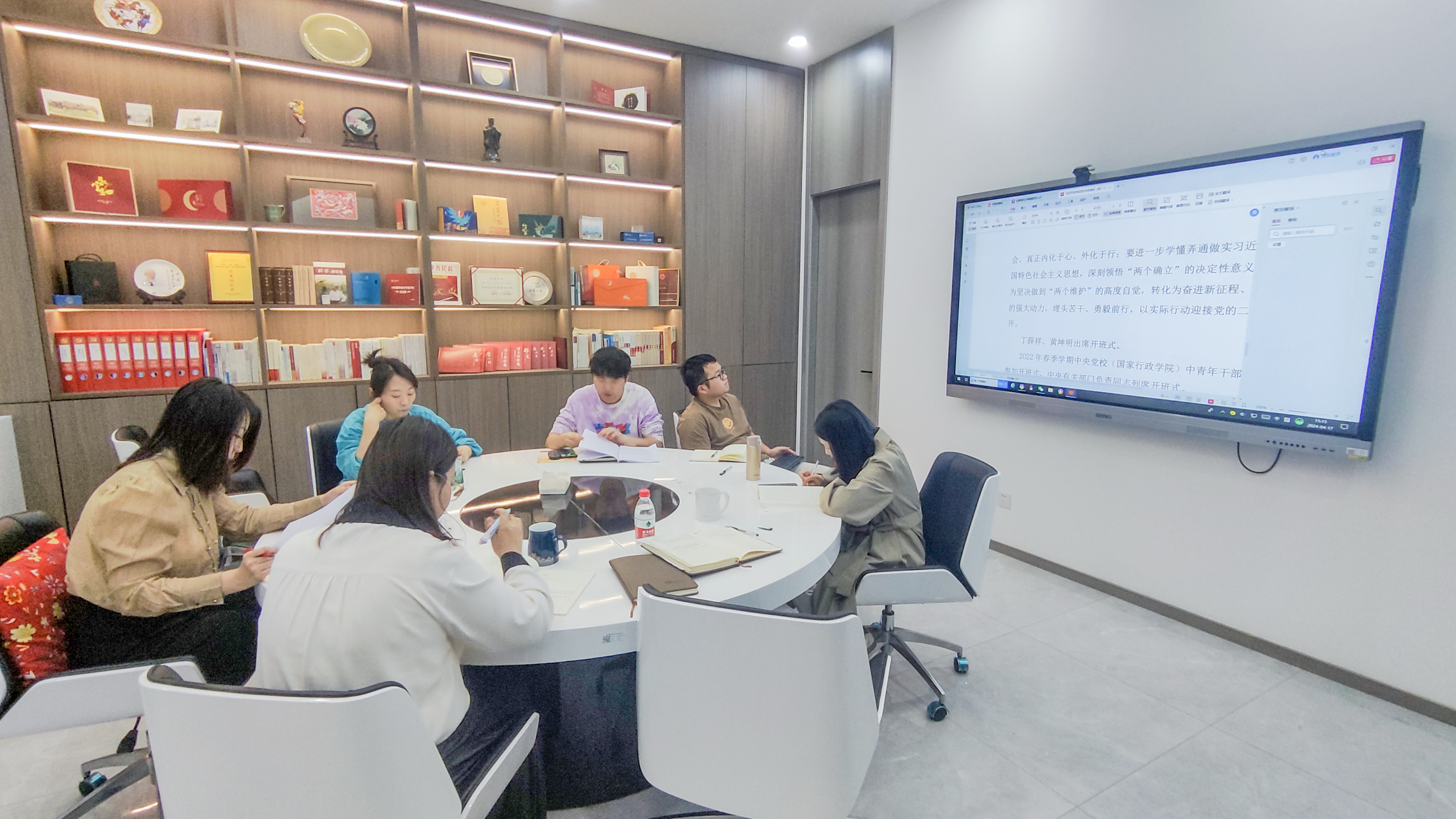 支部主题党日环节,首先,开展支部理论学习。学习由张迪同志领学《习近平总书记在中央党校(国家行政学院)中青年干部培训班开班式上的重要讲话、重要指示》,第二个环节,组织大家观看《全民国家安全教育丨警惕“温柔陷阱”守护数据机密》。