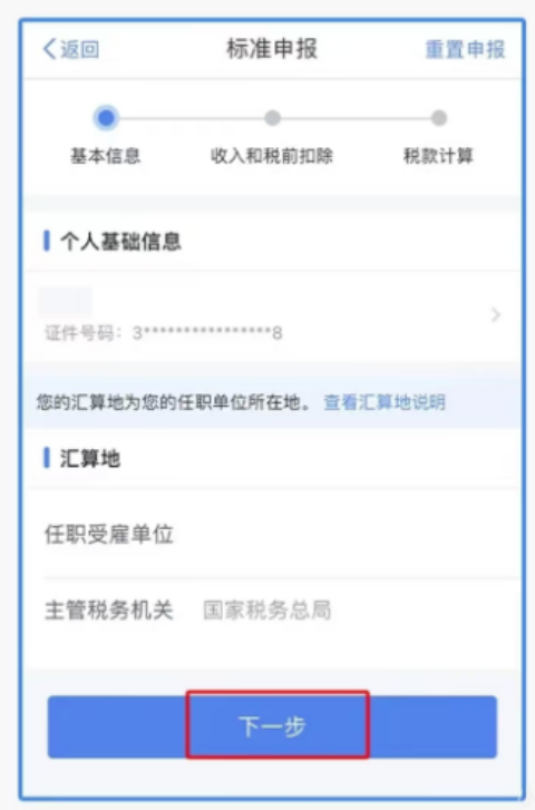 仔细核对个人基础信息,确认无误后,点击下一步。